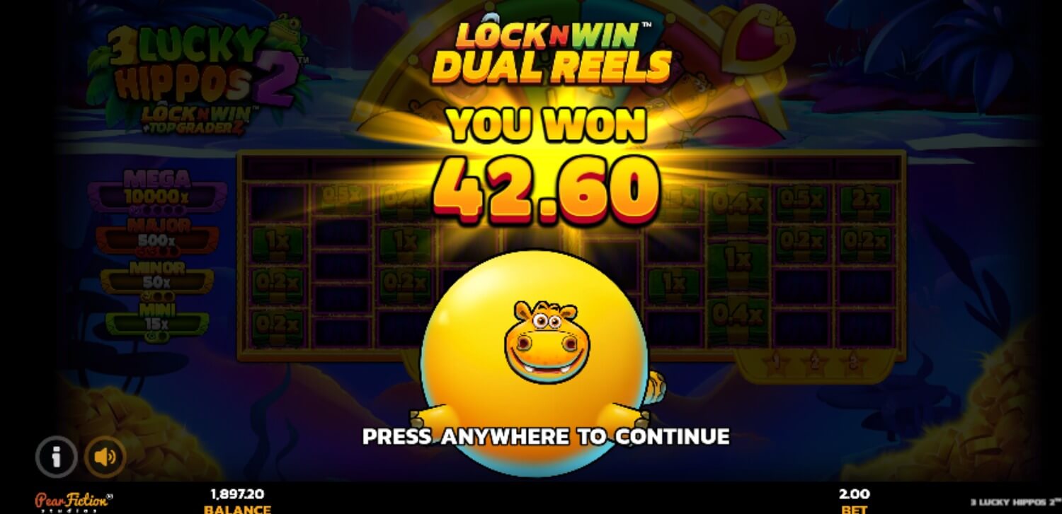 Yes, the Lock n Win bonus feature is included in 3 Lucky Hippos Lock n Win. This is the main attraction in this slot. When activated, the qualifying symbols “lock” in place while respins continue, and new symbols can reset the respin counter. In addition, versions of the feature with multipliers and jackpot prizes add even more value to the bonus round.