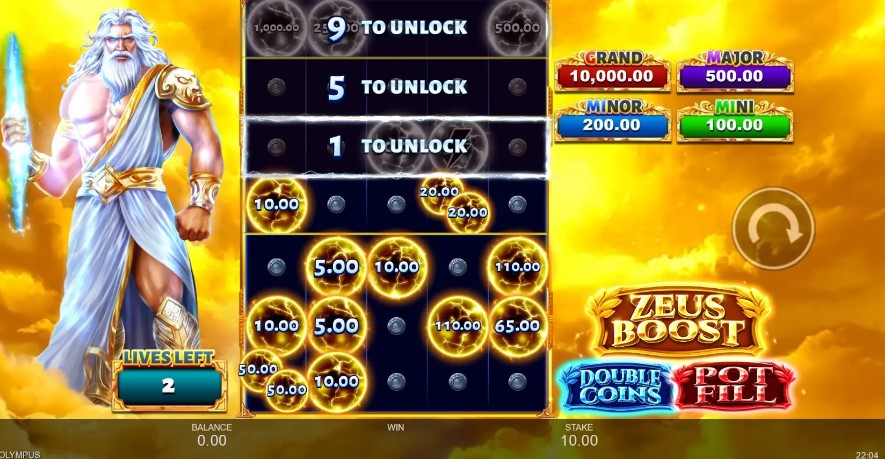 Inspired Gaming takes the premise that Zeus actively alters the outcome of each spin seriously. Two of the largest ideas related to this premise are Zeus Boost and Double Coins.